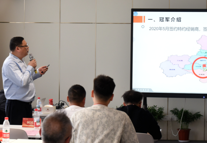 华东区浙江区域销售总监何小虎先生以《冠军成长记》为题,分享了浙江温州区域优秀经销商——温