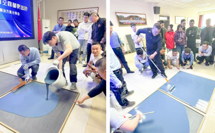 在实操演示环节,现场嘉宾近距离观摩并亲身体验了地坪施工的全过程,直观感受了产品的施工便捷